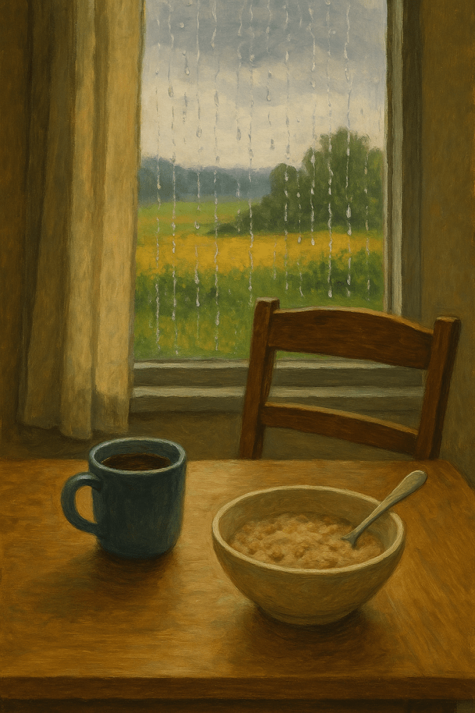 Den här morgonen var den regntunga och svala luften den bästa på länge, så jag tänkte att det är mot sitt slut som sommaren levererar – när den har fått träna ett tag. Och medan jag skriver det här har frukosten runnit undan och jag har suttit alltför länge med mitt kaffe och min havregrynsgröt.