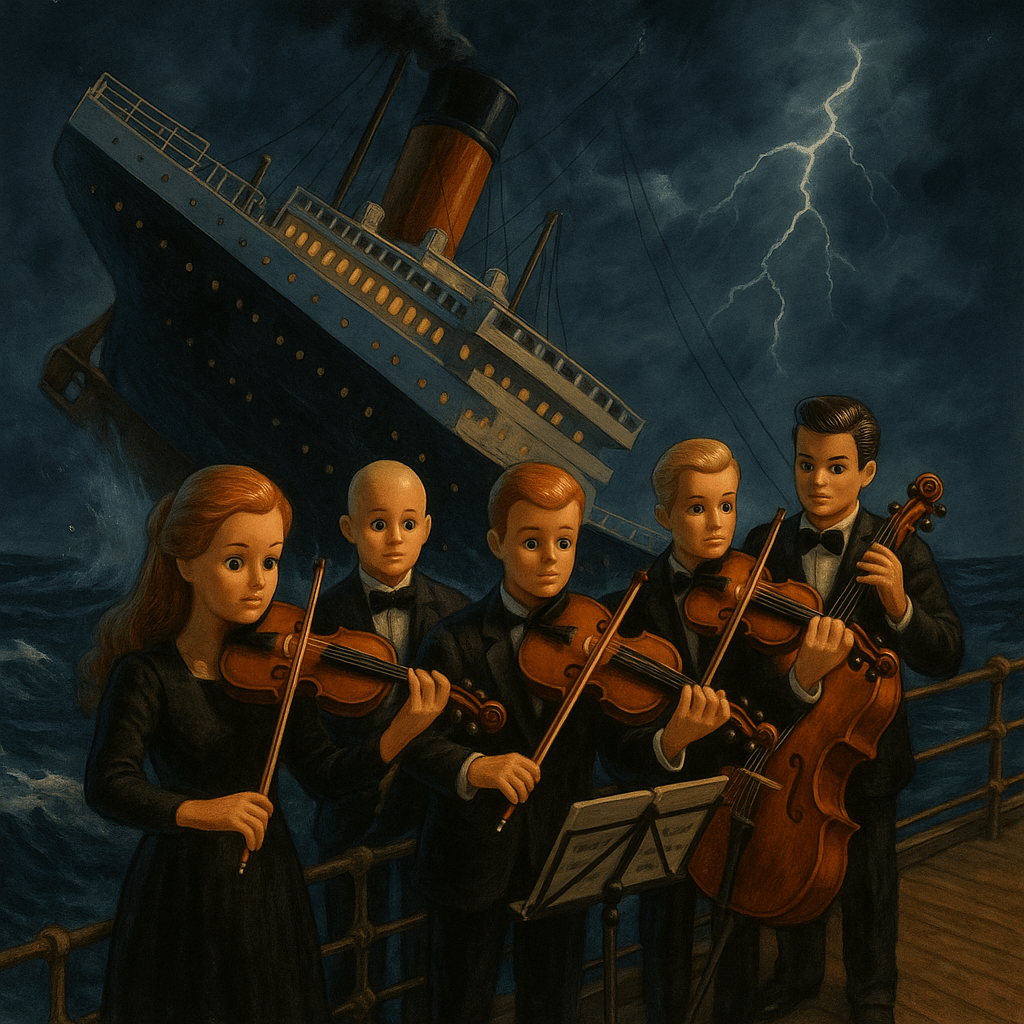 Det var befriande att höra Gun-Britt Sundström ventilera sina tankar om detta Söndagsintervjun. Vi ska inte låtsas att det ordnar sig, vi ska se sanningen i vitögat. Det betyder inte att vi måste sluta glädjas åt saker. Även på ett sjunkande skepp kan orkestern spela vackert.