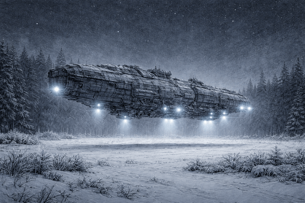 Något som bidrog till stämningen var att jag lyssnade på UFO-experten Clas Svahn från hans medverkan i Robert Edvardssons podcast i somras. Svahn pratade bland annat om mysteriet kring Ante Jonssons upplevelser i februari 1984, då en främmande farkost tycks ha svävat över riksväg 30 mellan Tingsryd och Växjö. Det som gör historien verkligt intressant är att inte bara Ante Jonsson utan också en annan bilist blev vittne till det svävande föremålet, och att alltihop finns dokumenterat i en polisrapport. Mer om detta har Clas Svahn skrivit här.