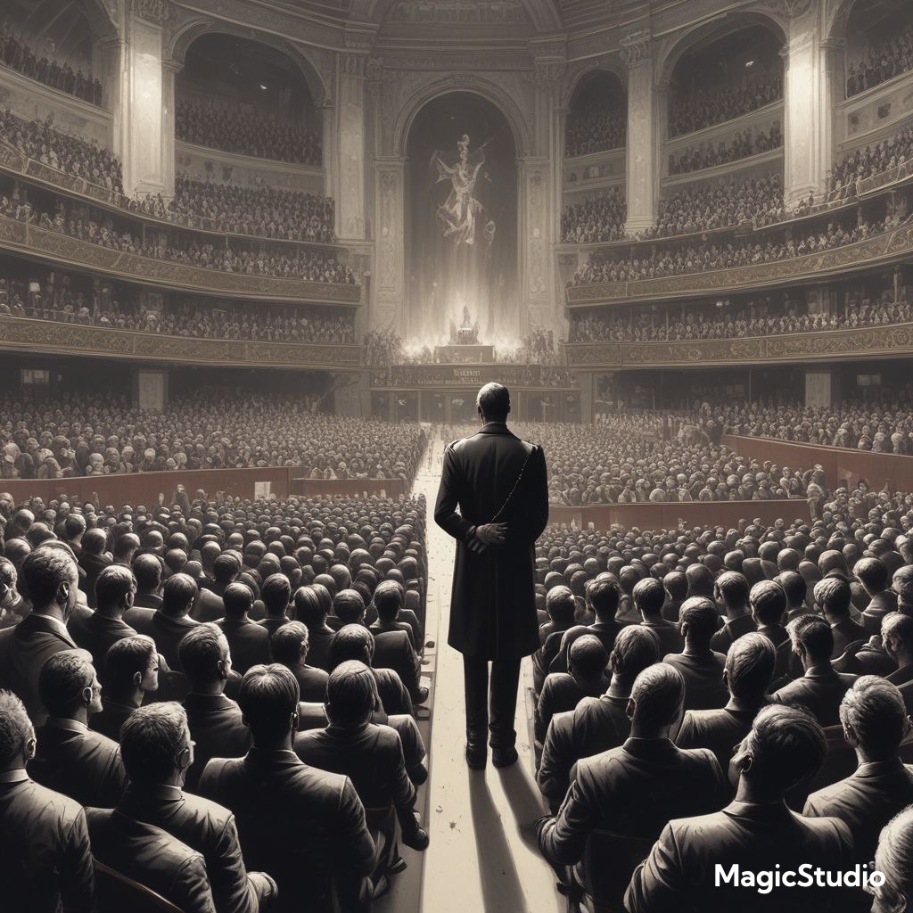 Historien upprepar sig. Prompt: ”dictator in front of a huge audience”