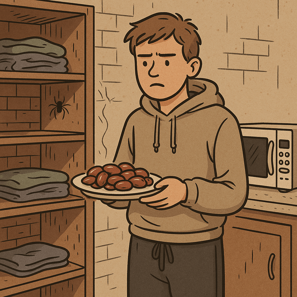 Det är Estoniaväder och alla mina mjukisbyxor har försvunnit. Så jag kollar först i tvättstugan där stora husspindlar krälar längs väggarna. Inget resultat, men sedan hittar jag ett gammalt par längst in i garderoben på mitt rum.